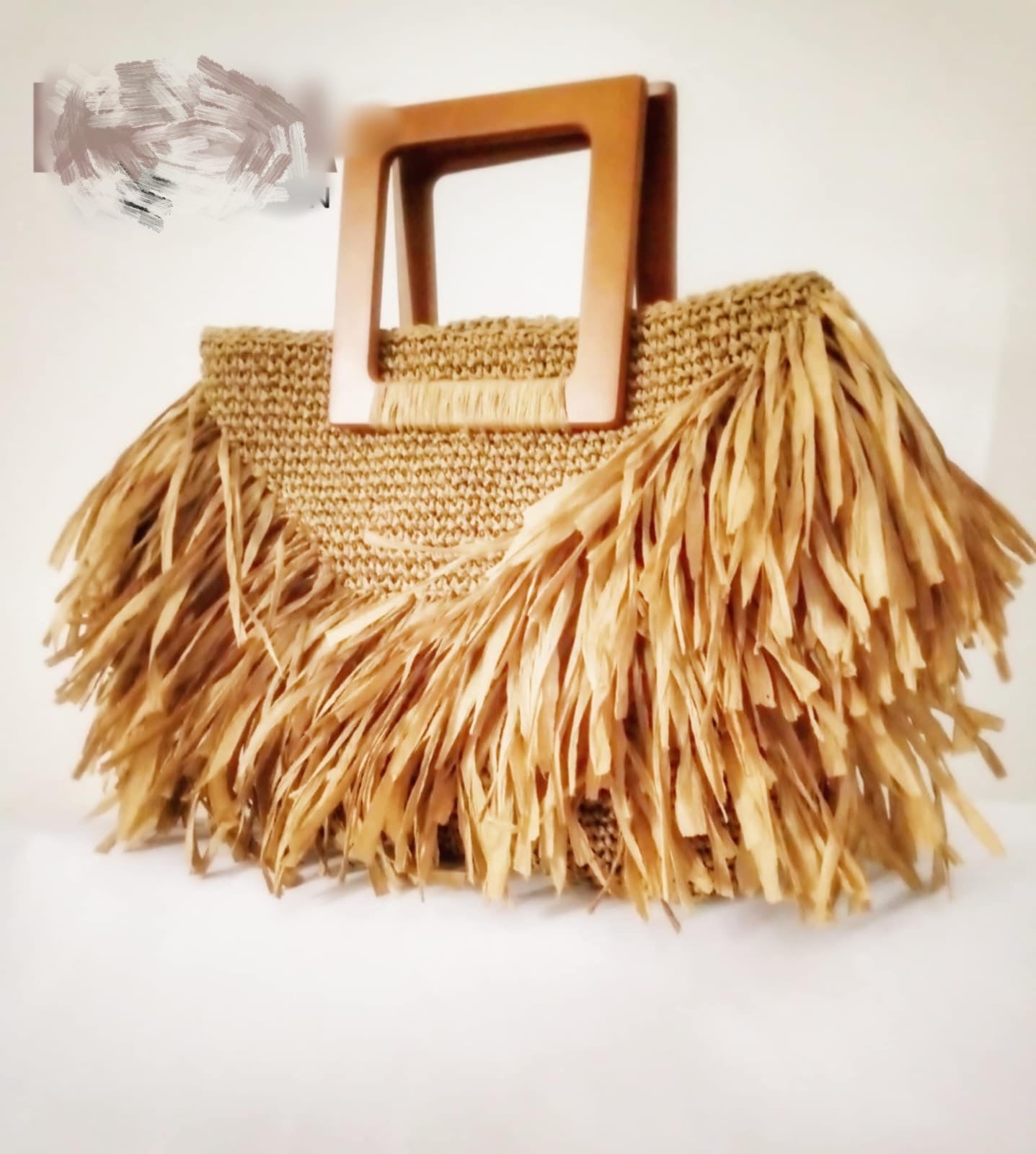Our raffia wooden bag